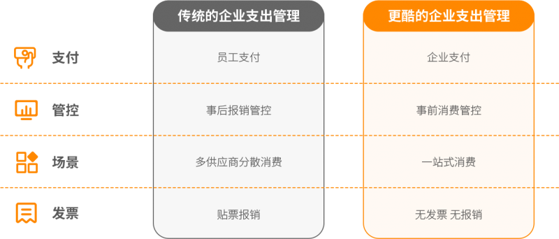 用于差旅、阵用餐、采购、企服等商务消费,企业支付,无需报销