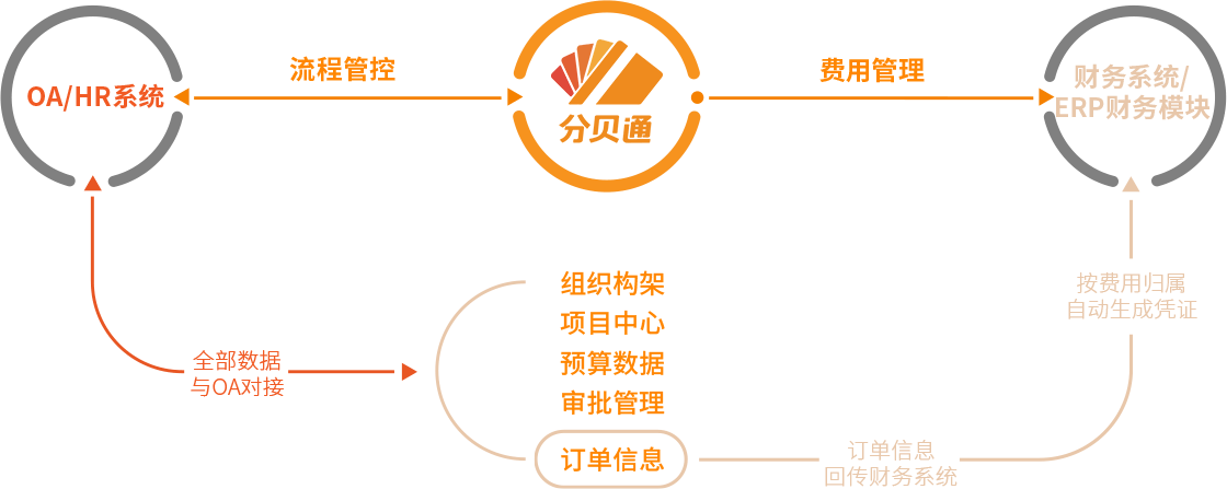 打通前端的OA/HR,后端财务/ERP系统,形成数据的互联互通